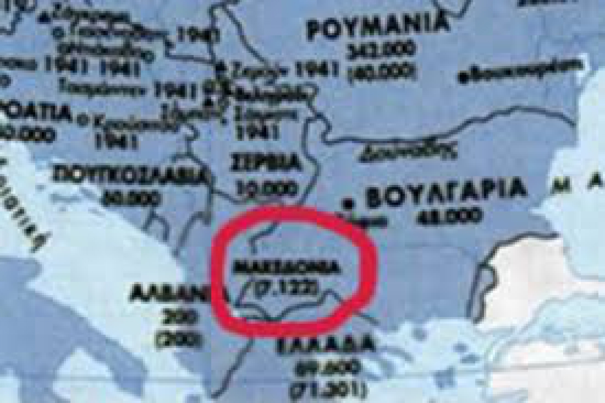 Η ΠΓΔΜ εμφανίζεται στον χάρτη του βιβλίου, ως "Μακεδονία".