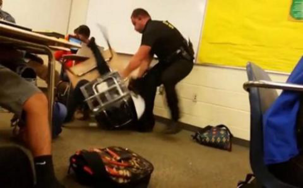 Ένα βίντεο που δείχνει έναν λευκό αστυνομικό να συλλαμβάνει σε αμερικανικό Λύκειο μια μαύρη μαθήτρια, ρίχνοντάς την από την καρέκλα της και χτυπώντας την προτού τη σύρει στο πάτωμα, έχει προκαλέσει αγανάκτηση στους ιστότοπους κοινωνικής δικτύωσης.