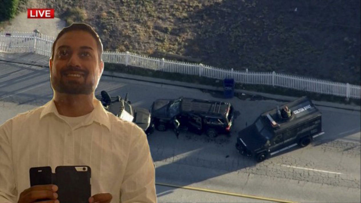 Μετά τον πανικό που επικράτησε, οι δράστες κατάφεραν να διαφύγουν από το σημείο της επίθεσης, αλλά ξεκίνησε ένα ανθρωποκυνηγητό από την αστυνομία, που κατάφερε να τους εντοπίσει. Ο μαύρο SUV που οδηγούσαν εγκλωβίστηκε από την αστυνομία και εκεί άρχισε νέος γύρος ανταλλαγής πυροβολισμών. Οχήματα των ειδικών δυνάμεων είχαν περικυκλώσει το αυτοκίνητο διαφυγής των δραστών. Μάλλον δεν τους άφησαν κανένα περιθώριο αντίδρασης. Το ανθρωποκυνηγό ξεκίνησε από ένα σπίτι στην περιοχή Ρέντλαντς. Το σπίτι δεν αποκλείεται να είναι του Σαγιέντ Φαρούκ.