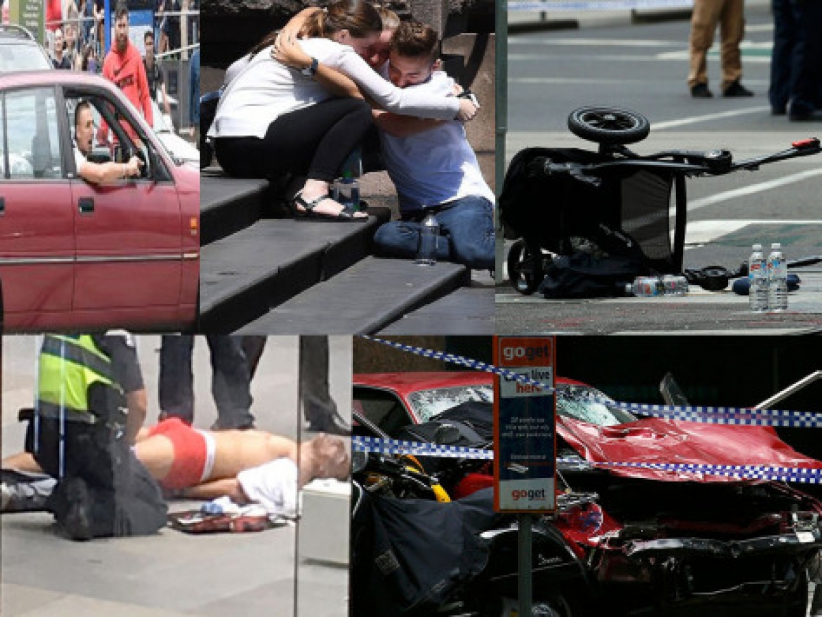 Βίντεο αυτόπτη μάρτυρα δείχνει το βυσσινί αυτοκίνητο να κάνει κύκλους σε μία διασταύρωση έξω από τον σιδηροδρομικό σταθμό Φλίντερς στην κεντρική επιχειρηματική συνοικία της πόλης και ο οδηγός του να φωνάζει στον κόσμο και να κουνάει το χέρι του έξω από το παράθυρο. Δύο άνθρωποι πλησίασαν το αυτοκίνητο προφανώς προσπαθώντας να το σταματήσουν προτού αναπτύξει ταχύτητα με την αστυνομία να το καταδιώκει.