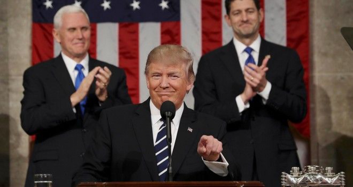 Οι Ρεπουμπλικάνοι, που έχουν την πλειοψηφία και στα δύο σώματα του Κογκρέσου, τον επευφημούσαν συνεχώς, ακόμη πιο ζωηρά όταν αναφέρθηκε στα μεγάλα του σχέδια—την κατασκευή νέων πετρελαιαγωγών, την ανέγερση ενός «μεγάλου τείχους» στα σύνορα με το Μεξικό, τον αγώνα εναντίον της «ριζοσπαστικής ισλαμικής τρομοκρατίας».
