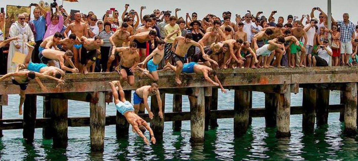Συγκίνηση προκαλεί η μεγάλη προσέλευση, το πάθος, ο συνωστισμός σχεδόν στην εξέδρα από τους νέους, αγόρια και κορίτσια που βούτηξαν στη θάλασσα του Rye για να πιάσουν τον σταυρό σήμερα το πρωί.