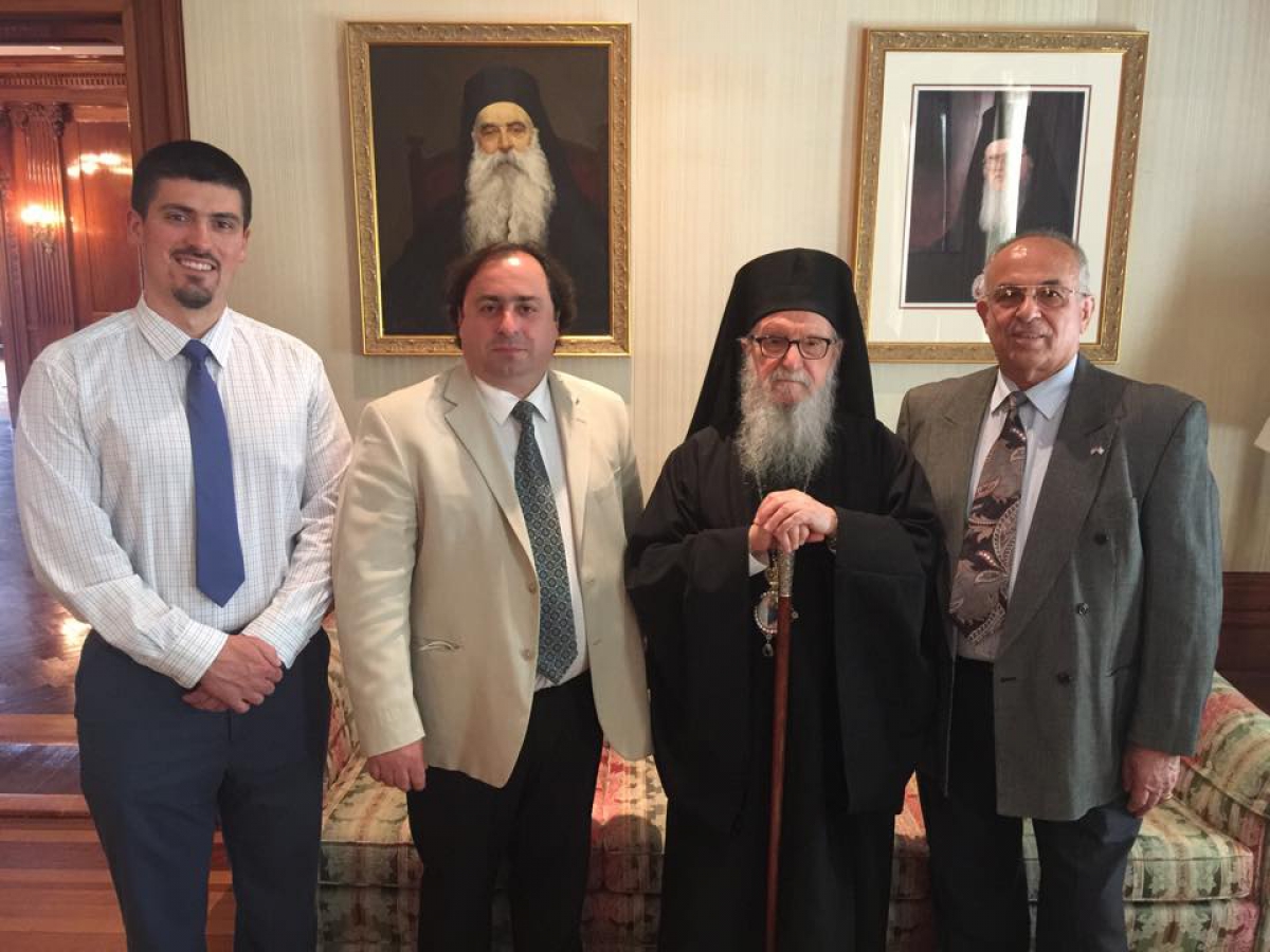 Σε αυτό το πλαίσιο, ο Πρόεδρος Δημήτρης Χατζής, ο Αντιπρόεδρος Χαράλαμπος Σταθόπουλος και ο πρώην Πρόεδρος και Υπεύθυνος της Διοργάνωσης του Συνεδρίου Γιώργος Παπαδόπουλος συνάντησαν τον Σεβασμιότατο Αρχιεπίσκοπο Αμερικής κ. Δημήτριο στην Θεολογική Σχολή της Βοστώνης. Ο Πρόεδρος της Παμμακεδονικής Δημήτρης Χατζής με το πέρας της συνάντησης εξέφρασε την απόλυτη ικανοποίηση του για το γεγονός ότι ο Αρχιεπίσκοπος είναι στο πλευρό του αγώνα της Παμμακεδονικής και μάλιστα όπως αποκάλυψε, ο Σεβασμιότατος επανέλαβε για ακόμη μία φορά την στήριξη του προς την προσπάθεια συλλογής υπογραφών. ‘’Αντλούμε δύναμη από την παρουσία του Αρχιεπισκόπου, ο οποίος πάντοτε είναι δίπλα μας και πάντοτε είναι πρόθυμος να υποστηρίξει τις προσπάθειες μας.‘’ δήλωσε χαρακτηριστικά ο κ. Χατζής.