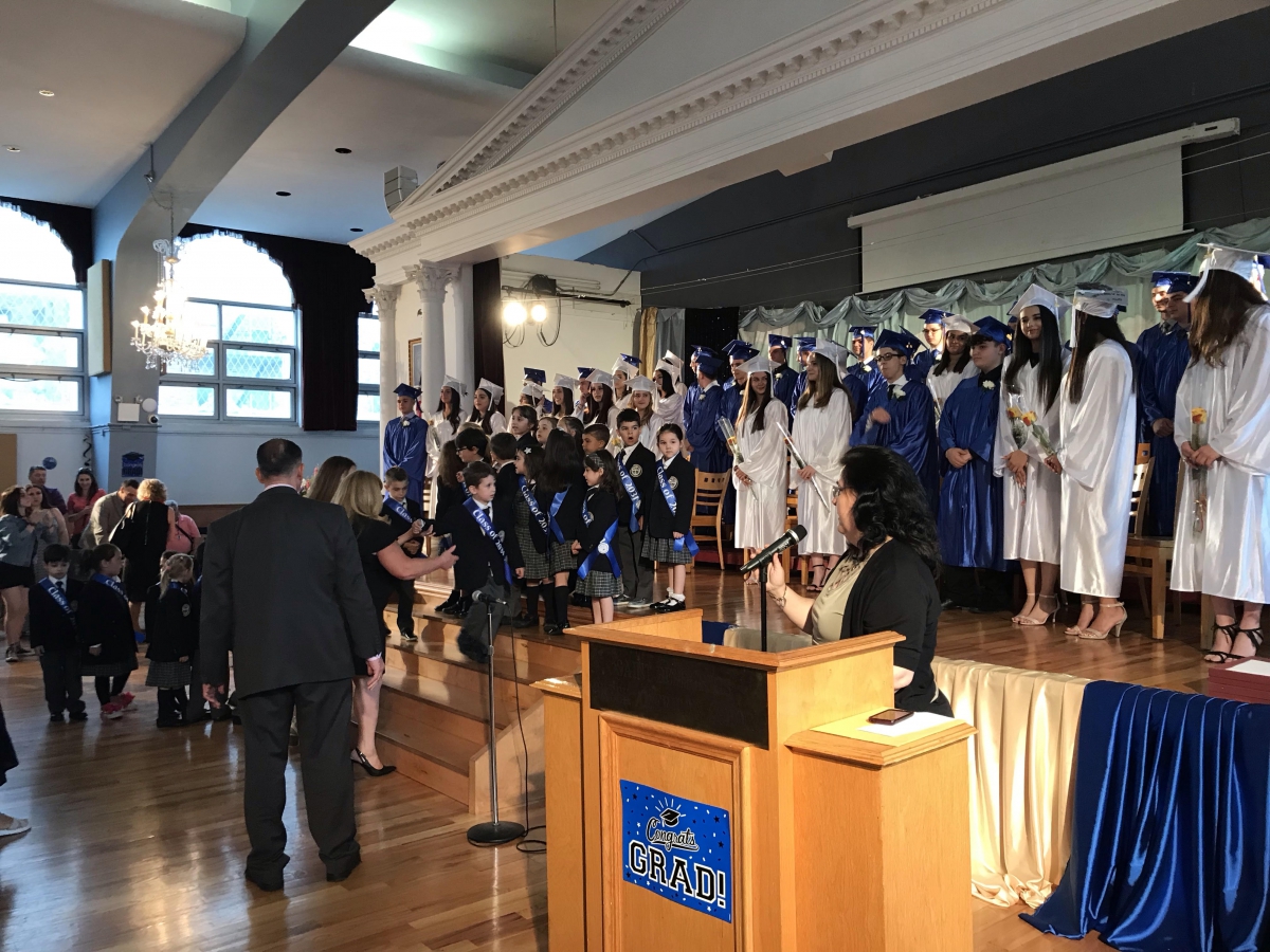 Το μήνυμα του Αρχιεπισκόπου Αμερικής κ. Ελπιδοφόρου μετέφερε ο Επίσκοπος Μηδείας κ. Απόστολος, ο οποίος απένειμε στους δυο αριστούχους από μια εικόνα της Παναγίας Παραμυθίας, ως δώρο από την Ι.Μ. Βατοπαιδίου.