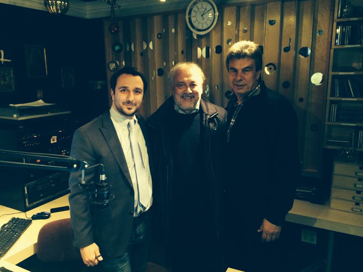Φωτό: Ο δημοσιογράφος Δημήτρης Φιλιππίδης, ο Γιώργος Καλαντζής και ο Πρόεδρος του Hellas FM Nίκος Φύλλας.