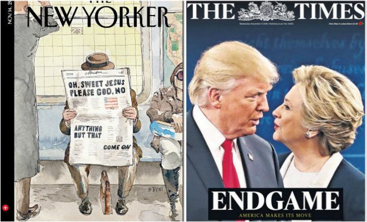 Πολλά από τα πρωτοσέλιδα μιλούν για θρίαμβο Τραμπ, ενώ άλλα κάνουν λόγω για "το τέλος του κόσμου" ή "του παιχνιδιού", αναλύοντας τις απόψεις και το πολιτικό και οικονομικό πρόγραμμα του νέου πλανητάρχη.