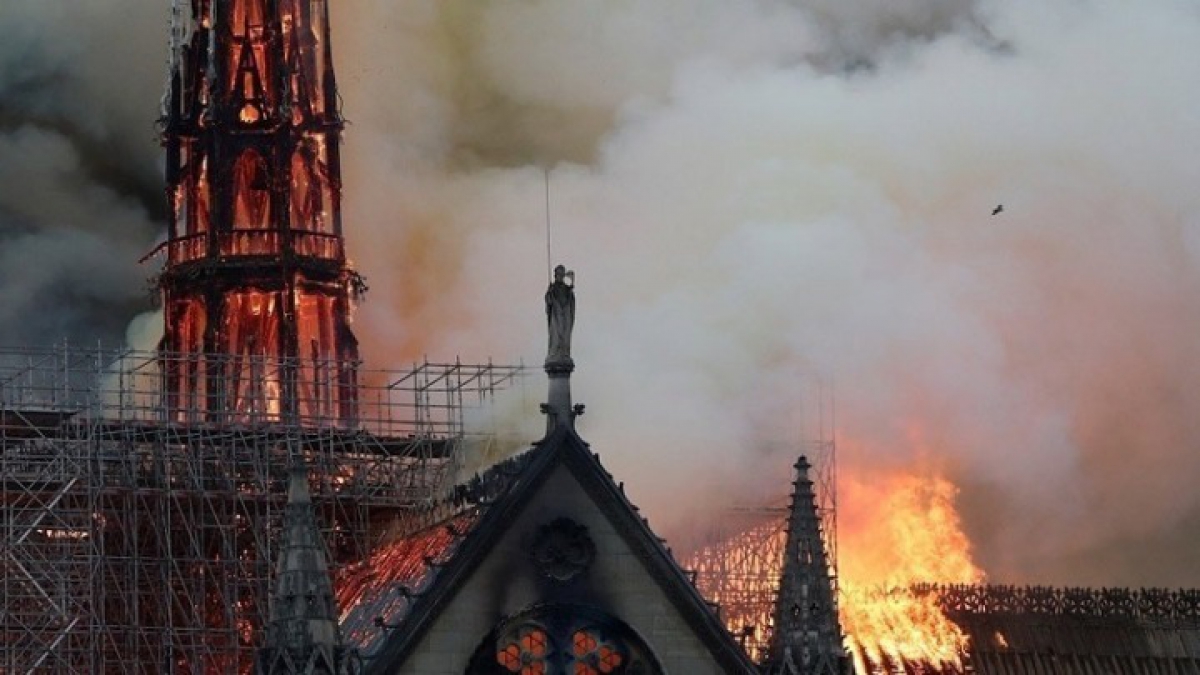 Στις 15 Απριλίου, η σκεπή και ο ξύλινος σκελετός της στέγης του καθεδρικού ναού της Νοτρ Νταμ καταστράφηκαν από πυρκαγιά.