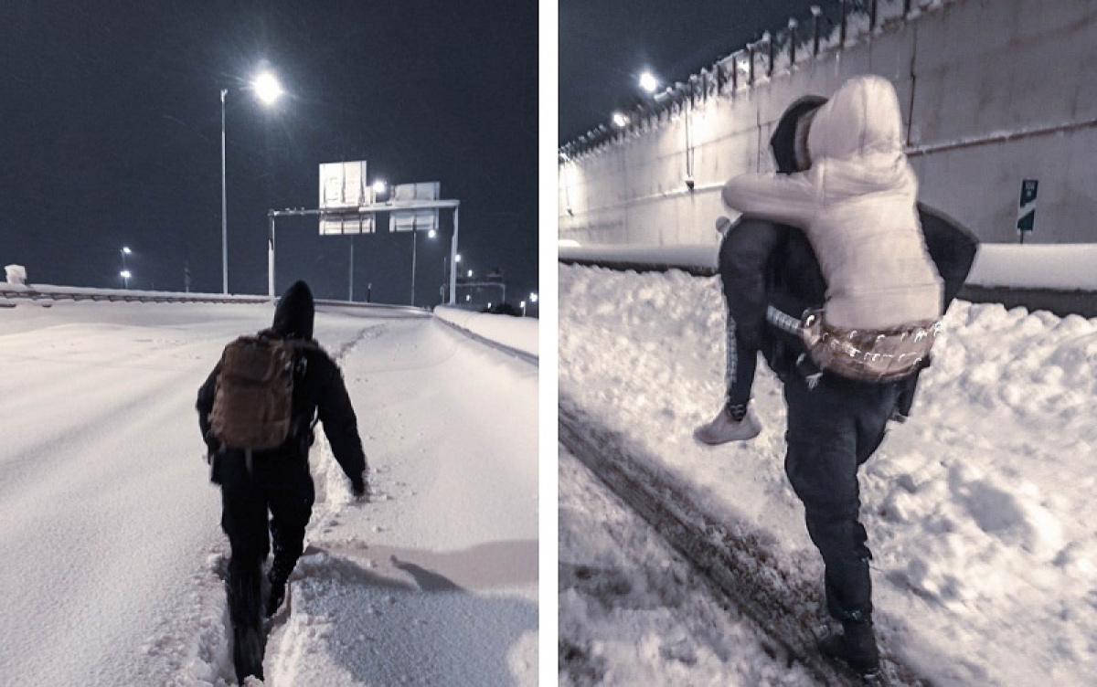 Η οικογένεια της μικρής είχε εγκλωβιστεί στην Περιφερειακή Υμηττού και ο πατέρας της είχε ενημερώσει, ότι βρίσκονται για ώρες στο χιόνι και το κοριτσάκι έπρεπε το πρωί να πάει σε νοσοκομείο για να χειρουργηθεί. Οι αστυνομικοί κινούνταν πεζή για αρκετά χιλιόμετρα με κουτί πρώτων βοηθειών, καθώς η προσέγγιση με όχημα ήταν αδύνατη. Οι αστυνομικοί τους εντόπισαν και χωρίς δεύτερη σκέψη μετέφεραν το κορίτσι στην πλάτη τους μέχρι τη Δουκίσσης Πλακεντίας, απ’ όπου μαζί με τον πατέρα της παρελήφθησαν από άλλους αστυνομικούς και οδηγήθηκαν με ασφάλεια στο σπίτι τους.